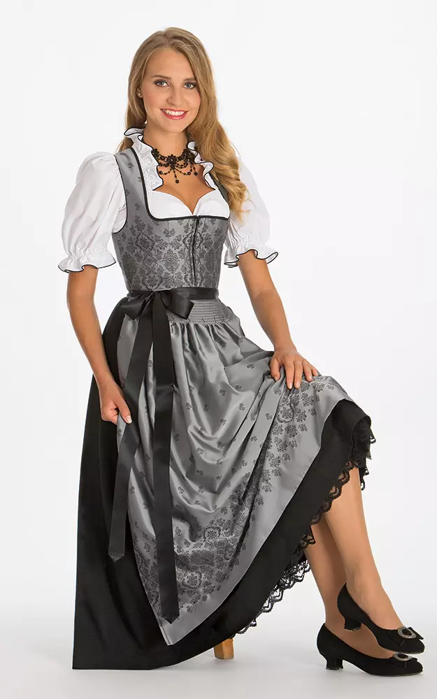 Bildschön ist dieses edle Dirndl mit eindrucksvollem Bordürenmuster am Oberteil aus seidig glänzendem Jacquard und Schürze im gleichen Dessin sowie faltengelegtem Rock in Trachtenlänge 90 cm. Separat erhältlich: Die Bluse mit herzförmigem Ausschnitt ist, passend dazu, mit schwarzen Kanten-Paspeln akzentuiert.Bitte beachten Sie, dass Dirndlkleider auf Figur gearbeitet sind und eng sitzen müssen. Gegenüber modischer Kleidung fallen sie daher eher klein aus. Bitte beachten Sie deshalb unsere Maßtabelle.Die Seitennähte unserer Modelle sind so versäubert, dass Sie leicht um bis zu eine Konfektionsgröße enger oder weiter gemacht werden können.Bei Fragen beraten wir Sie gerne telefonisch.Im Preis enthalten ist das Dirndl ohne Schürze, ohne Bluse oder weitere abgebildete Artikel.