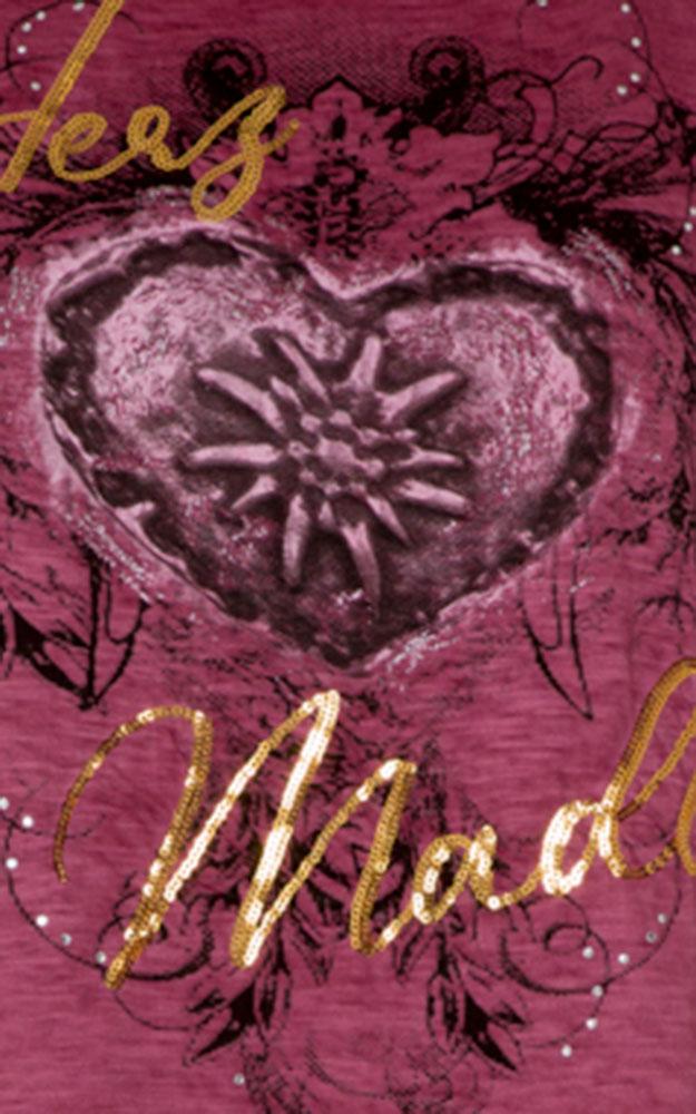 Flottes T-Shirt mit Pailletten und Strass. Ideal zur kurzen Lederhose oder zur Jeans.