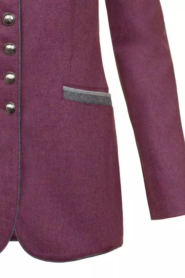 Diese klassische Lodenjacke ist etwas länger geschnitten und ganz gefüttert. Die Paspel und Kontrastblenden machen eine schöne Einheit. Die Knöpfe runden das Modell gekonnt ab.