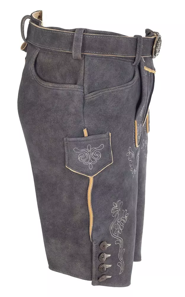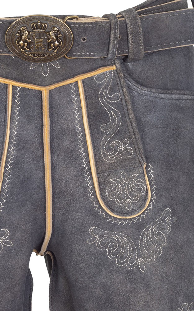 Hirschlederhose Hubert mit Gürtel, anthrazit