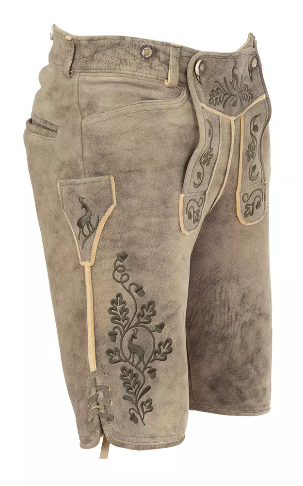 Hirschlederhose Ludwig ohne Träger, altsalzburg oliv