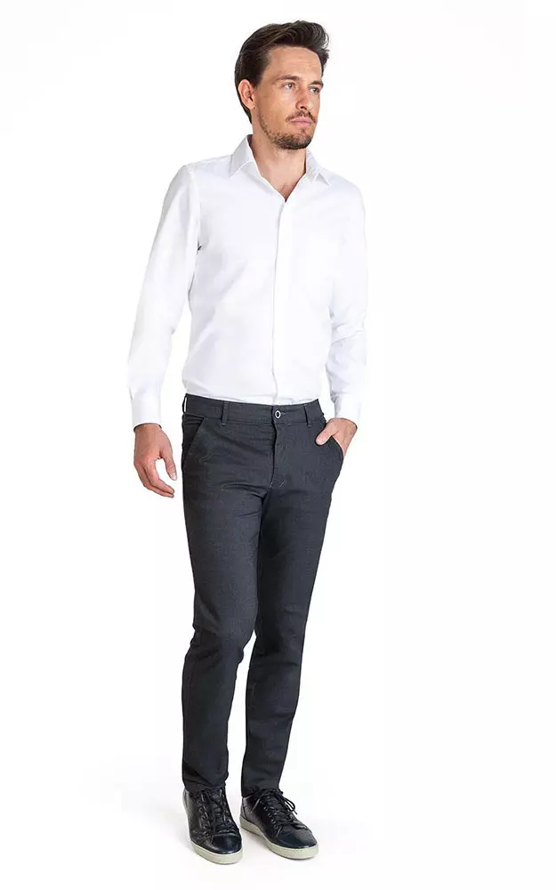 Das Modell bietet eine normale Leibhöhe und wegen der schmaleren Fußweite einen schlankeren Beinverlauf.