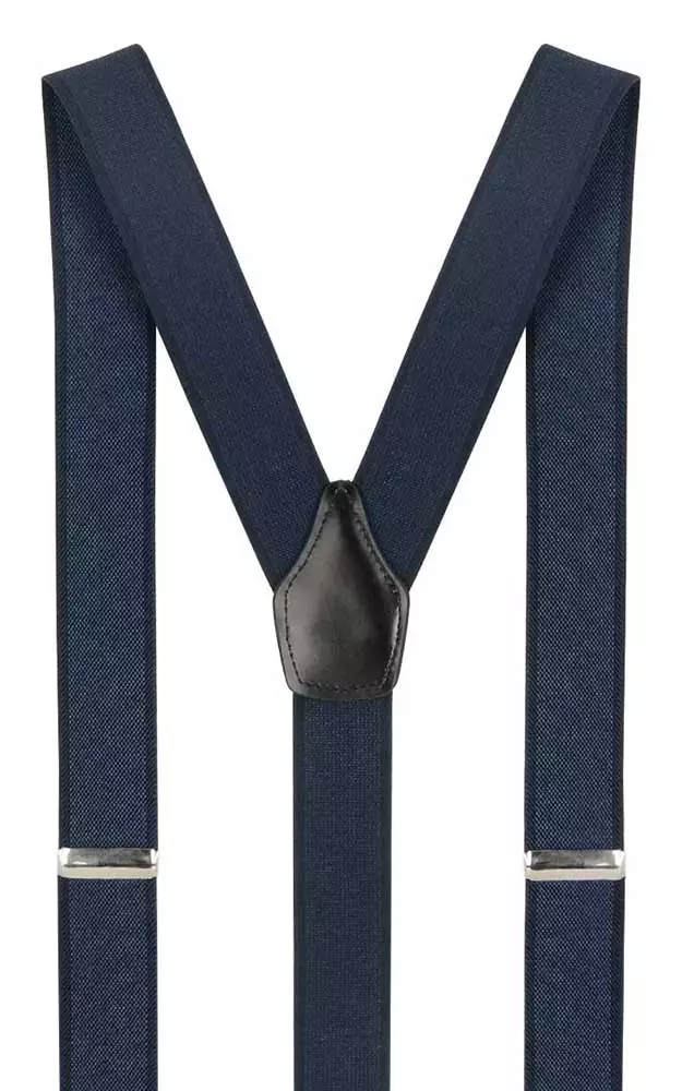 Elastischer Hosenträger zu Ihrer Stresemann-Hose in Blau/Schwarz zum Knöpfen mit Lederrückenteil und Lederbiese.