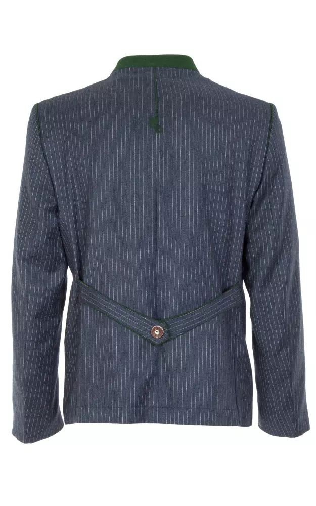 Leicht tailliert geschnittener Trachtenjanker mit 3 Innentaschen und Rückenspange. Das Taft-Innenfutter ist in leicht schimmerndem, schwarzen Paisleymuster gehalten.