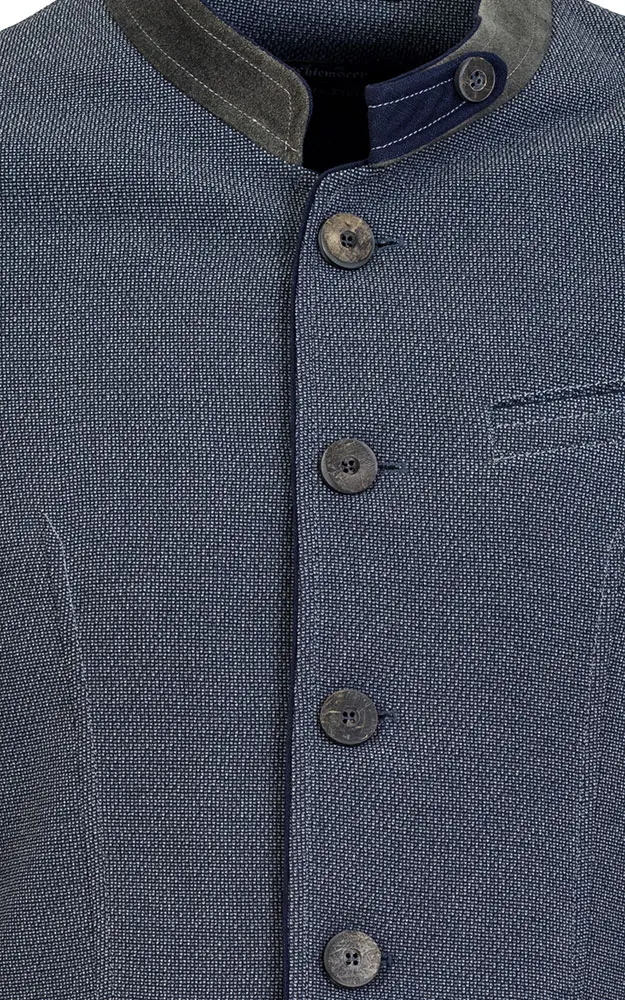 Leicht tailliert geschnittener Trachtenjanker mit 2 Innentaschen. Das Taft-Innenfutter ist in leicht schimmerndem, blauem Taft gehalten.