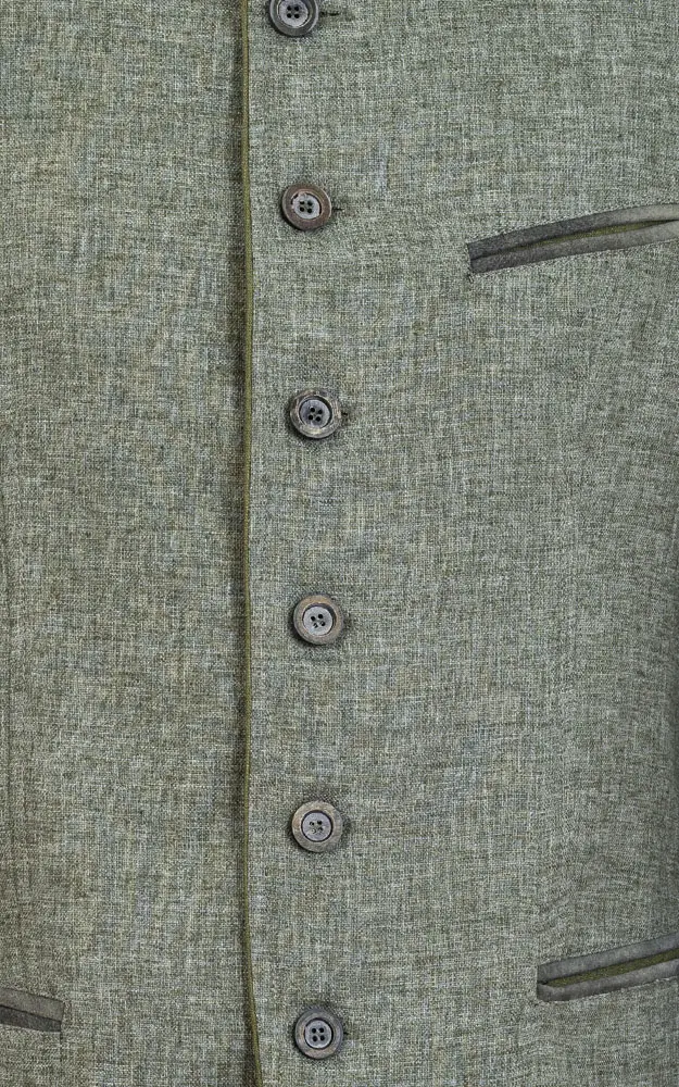 Leicht tailliert geschnittener Trachtenjanker mit 2 Innentaschen. Das Taft-Innenfutter ist in leicht schimmerndem Grün gehalten.