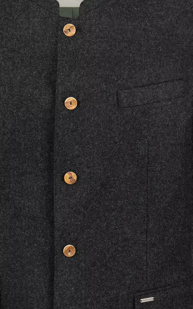 Gefertigt aus hochwertigem, melierten Lodenstoff, besticht dieser Trachtenjanker durch seine unvergleichliche Qualität. Sein klassischer, trendiger Schnitt gewährleistet nicht nur eine hervorragende Passform, sondern auch ein Höchstmaß an Komfort. Der traditionelle Stehkragen betont das markante Design dieses Meisterstücks. Die Verwendung traditioneller Hornknöpfe vollendet das edle Erscheinungsbild und unterstreicht die Liebe zum Detail. Dieses Sakko ist der ideale Begleiter zu unseren Lederhosen und verleiht Ihrer Garderobe eine zeitlose Eleganz.