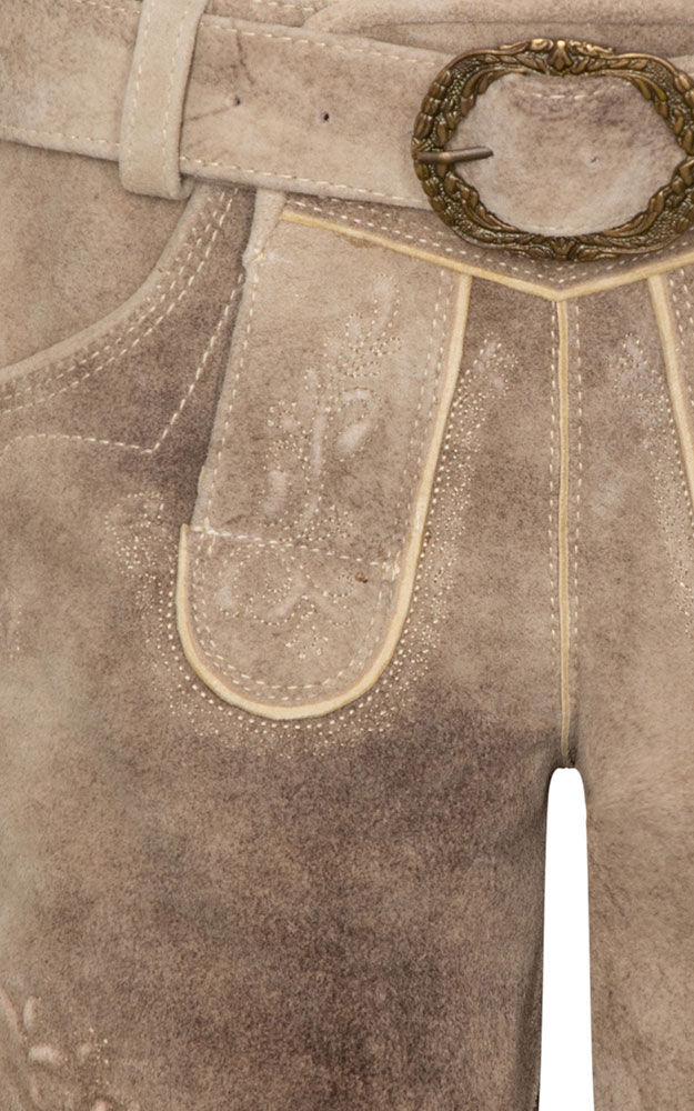 ACHTUNG: Bis Größe 116 wird die Kinderlederhose mir Stegträger geliefert, ab Größe 128 mit Gürtel.