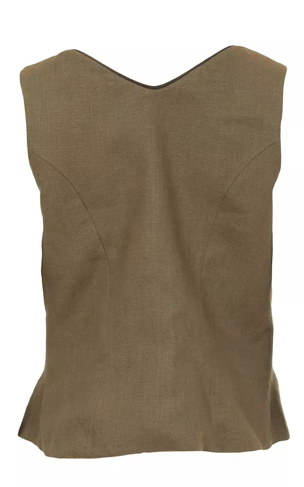 Vielseitig kombinierbares Mieder aus reinem Leinen mit Lederpaspelierung - auch an den Taschen-Eingriffen.