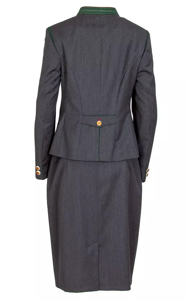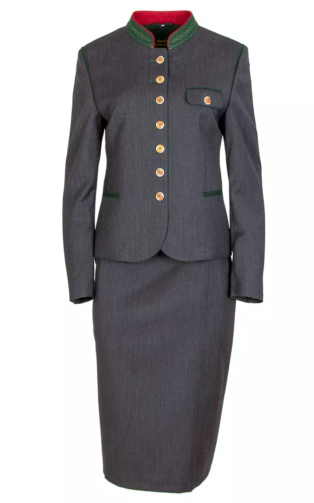 Elegante, leicht taillierte Trachtenjacke mit figurformenden Ziernähten. Das Innenfutter ist in Tannengrün gehalten.Rückenlänge bei Größe 38 ca. 59cm