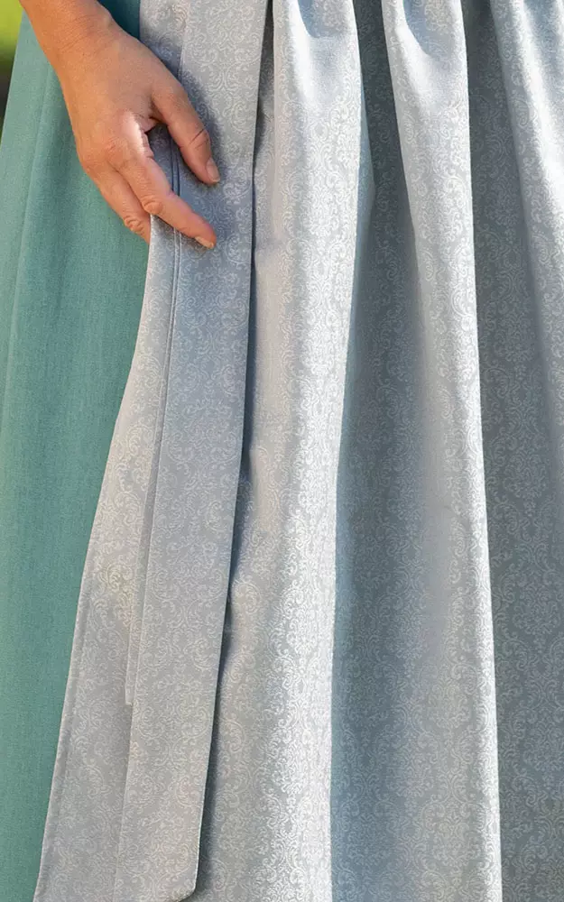 Seidig glänzende Jacquard-Schürze.