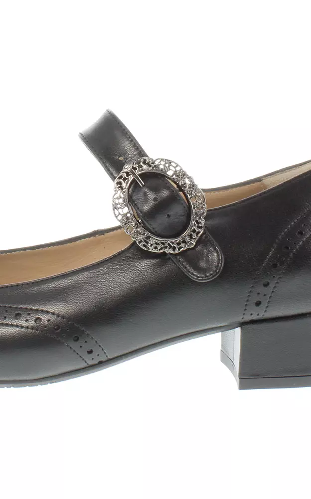 Mit dem lederbezogenen 3-Zentimeter-Absatz sorgen die Trachtenpumps für Ihren perfekten Auftritt. Die verstellbare Spange gibt Ihnen sicheren Halt. Kombinieren Sie Ihr Dirndl mit diesen wunderschönen Pumps! Trachtenpumps ANNA können Sie ebenso zu festlichen Anlässen oder im Alltag zur Jeans tragen. Die stilvollen Schuhe begleiten Sie, wohin Sie wollen!