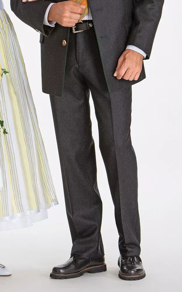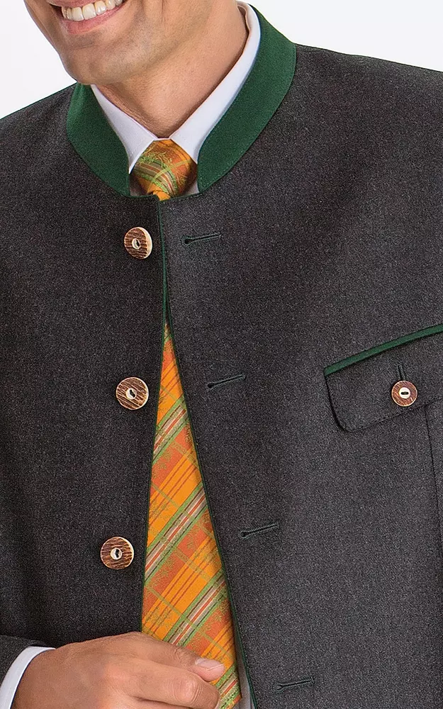 Bestens verarbeiteter 2-teiliger Baukasten-Trachten-Anzug mit tannengrünem Ausputz. Wählen Sie zum Janker mit 2 Innentaschen, Rückenfalte und -spange, die Hose in der Größe Ihrer Wahl und das zu einem sagenhaften Preis!
