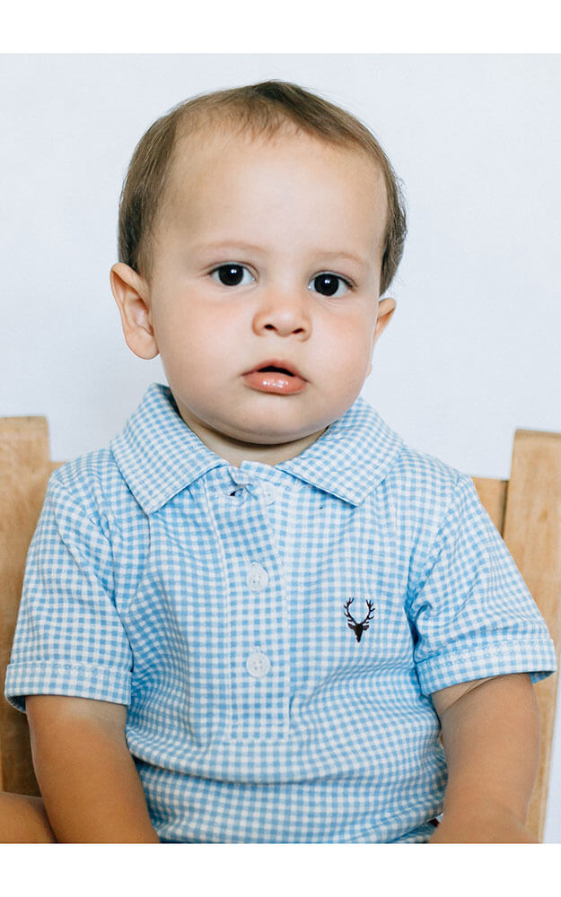 Süßer Babybody in Hemdoptik. Gefertigt aus weichem elastischem Jerseymaterial.
