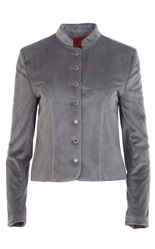 Angesagte Samtjacke mit einer Rückenlänge von ca. 52 cm bei Größe 38. mehr