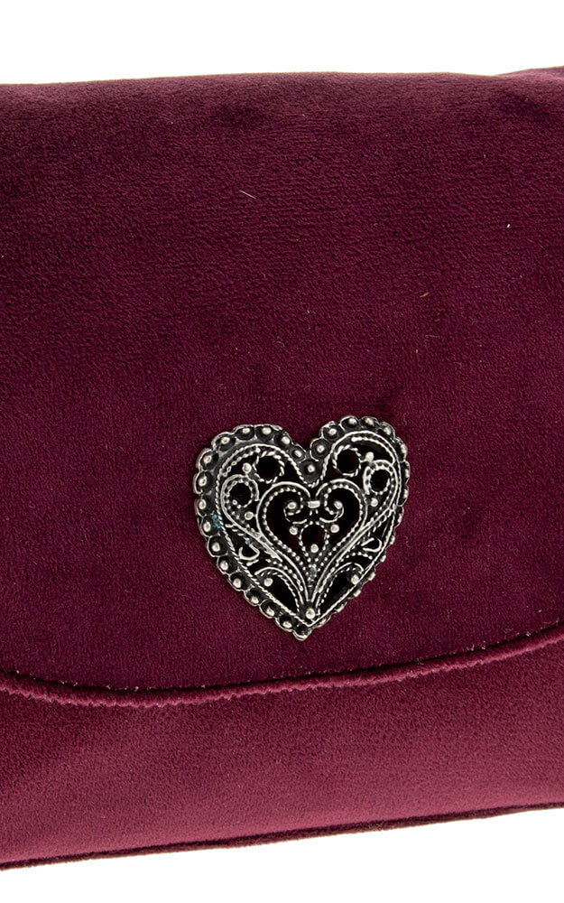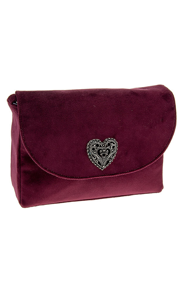 Velourstasche mit Magnetverschluss und verstellbarem Trageriemen.