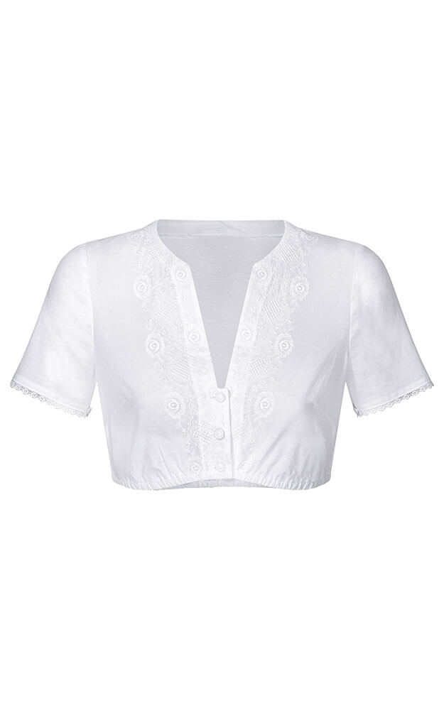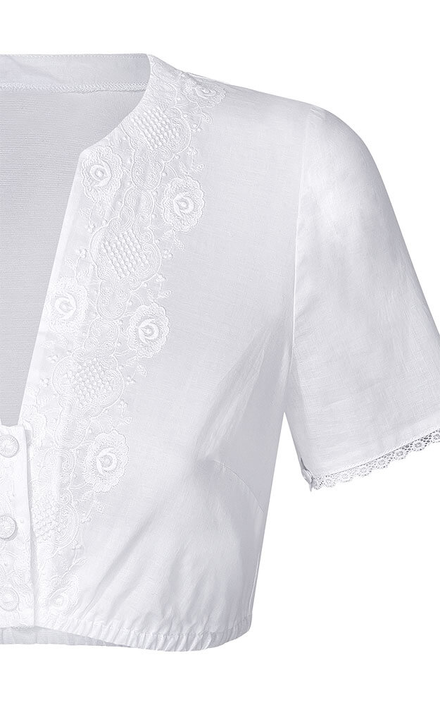 - V-Ausschnitt mit hochwertigem Stick - Kurzer Arm mit Zierborte - Rücken aus Jersey - Vorne... mehr