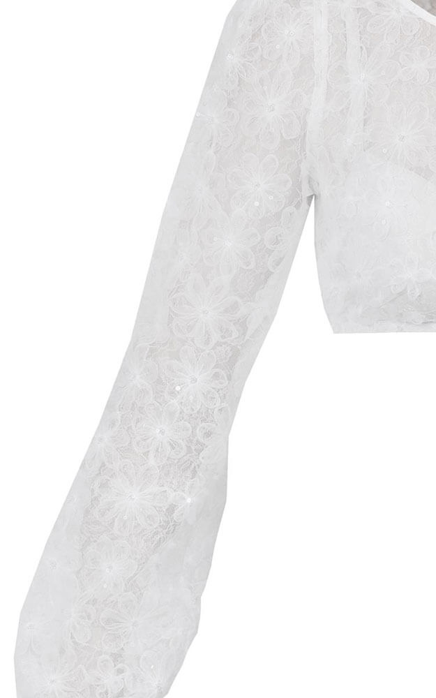 Angesagte Spitzen-Bluse mit Puffärmeln. mehr