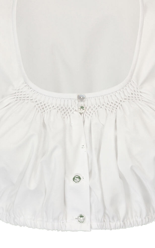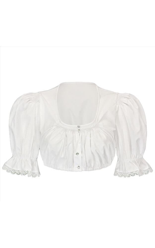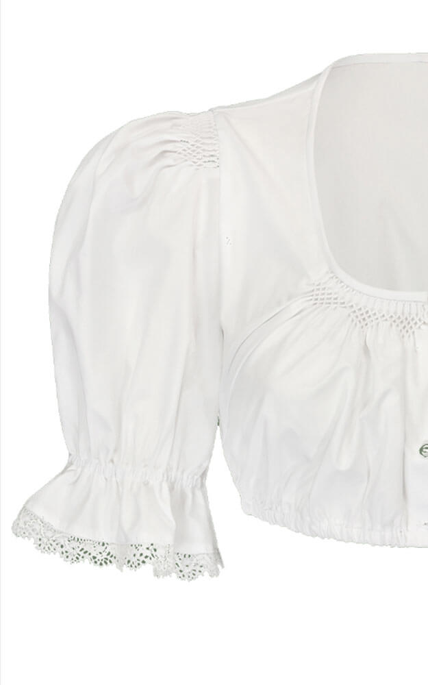 Runder Halsausschnitt mit Waffelsmok in Handarbeit. Puffarm mit Waffelsmok verziert. mehr