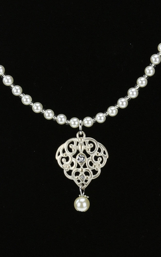 Trachten-Collier mit Perlen und Metall-Anhänger.