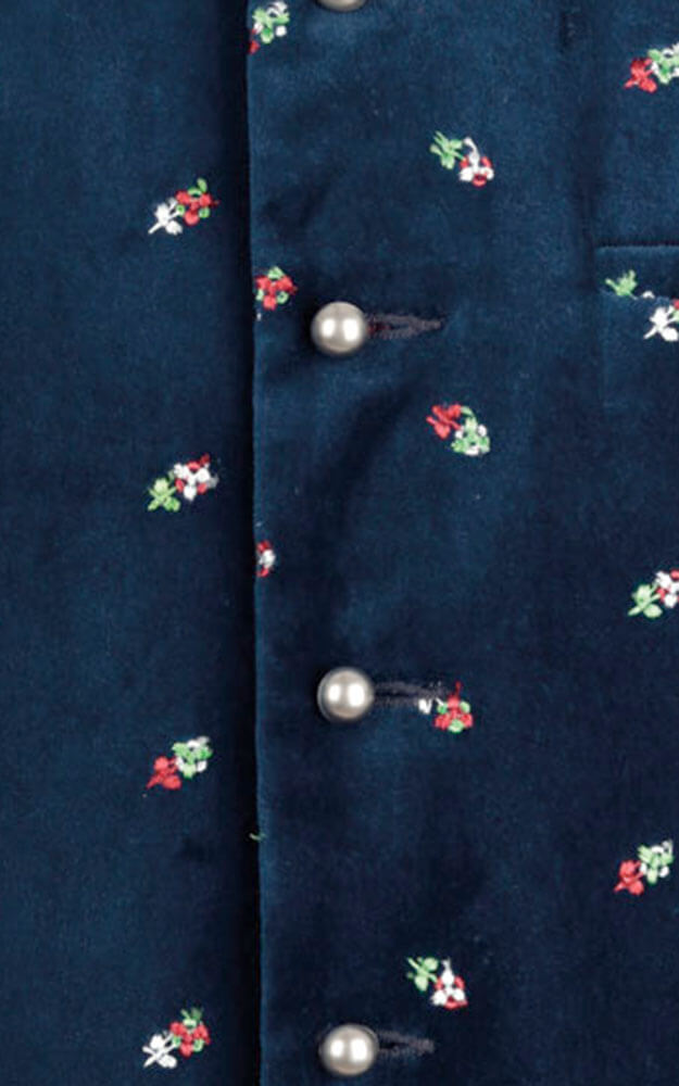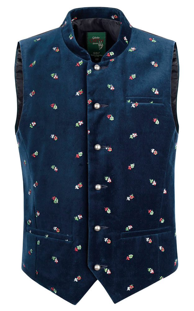 Samt-Trachtenweste, bestickt einreihig, Stehkragen, mit Metall-Kugelknöpfe, Stoffrücken mit... mehr