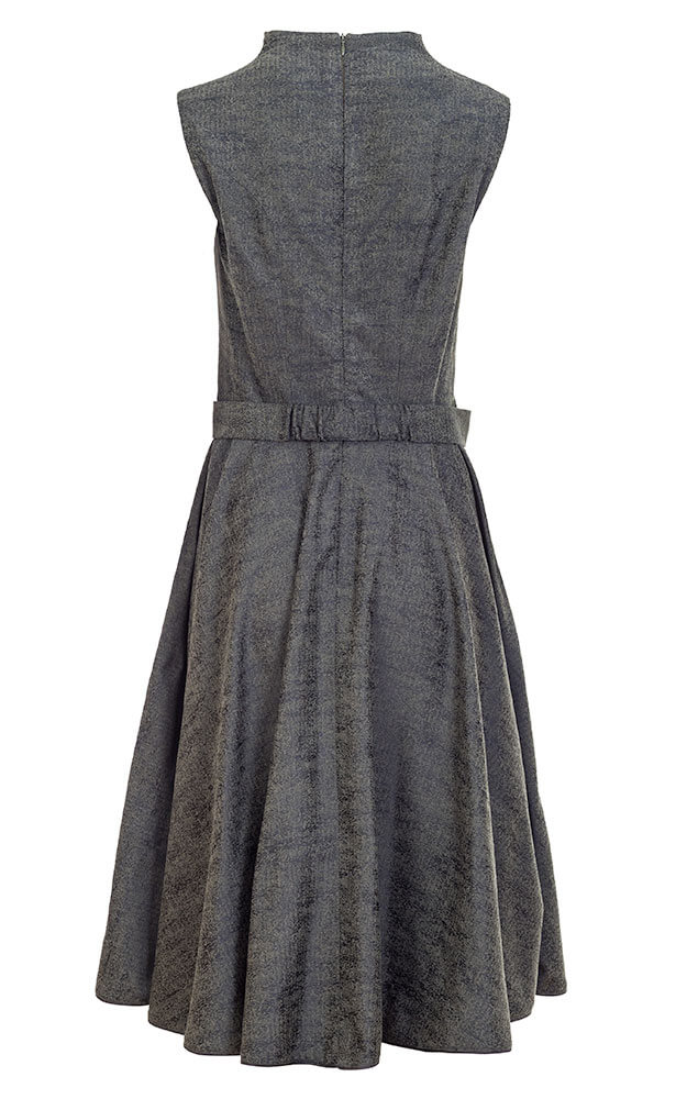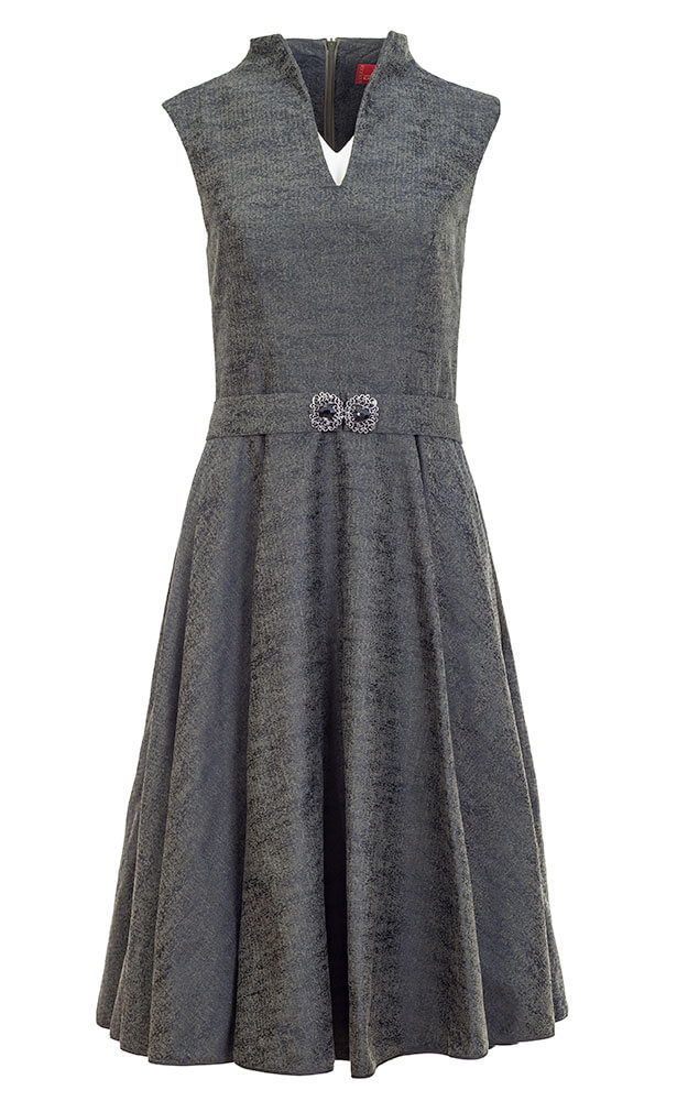 Elegantes Kleid aus mit V-Ausschnitt und Elastik-Gürtel. mehr
