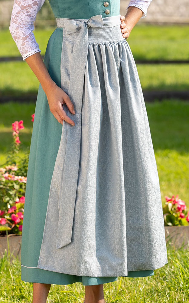 Diese Schürze ist in Einheitsgröße gefertigt und ab Größe 48 tragbar.