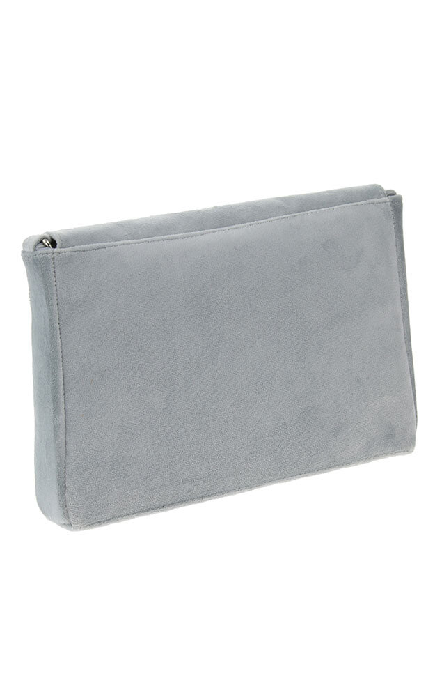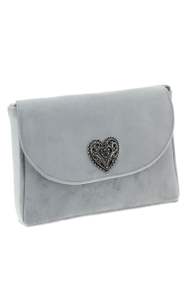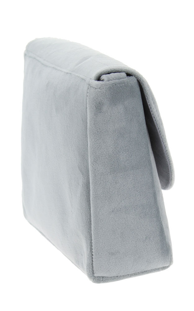 Velourstasche mit Magnetverschluss und verstellbarem Trageriemen.