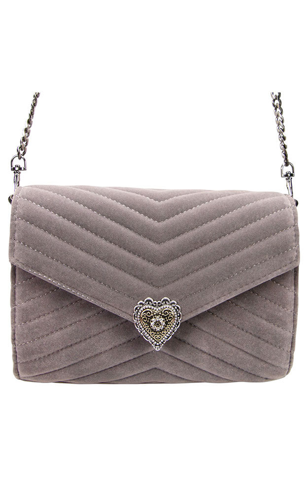 Diese stilvolle Trachten-Clutch ist das perfekte Accessoire für Dein Dirndl. Aus edlem Samt gefertigt, besticht sie durch ein fest angebrachtes, bicolor-farbenes Herz mit funkelndem Stein – ein echter Blickfang! Die Metallkette bietet Dir flexible Tragemöglichkeiten, ob in der Hand oder über der Schulter. Ideal für Volksfeste, Hochzeiten und festliche Anlässe – traditionell, modern und einfach zauberhaft!
